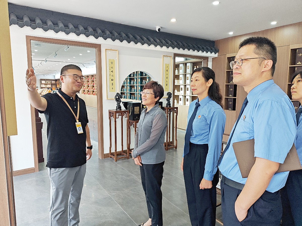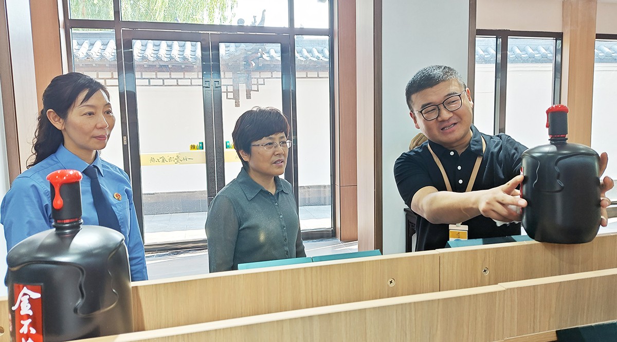 劉繼英一行在金不換集團(tuán)黨委書記、總裁支濤的陪同下,實(shí)地查看了金不換白酒儲(chǔ)藏、銷售、生產(chǎn)、文化展示基地。聽(tīng)取企業(yè)生產(chǎn)經(jīng)營(yíng)情況和發(fā)展規(guī)劃介紹。劉繼英檢察長(zhǎng)對(duì)金不換多年來(lái)堅(jiān)持守法誠(chéng)信經(jīng)營(yíng),創(chuàng)造良好生產(chǎn)經(jīng)營(yíng)環(huán)境,取得高質(zhì)量發(fā)展給予高度贊揚(yáng)。